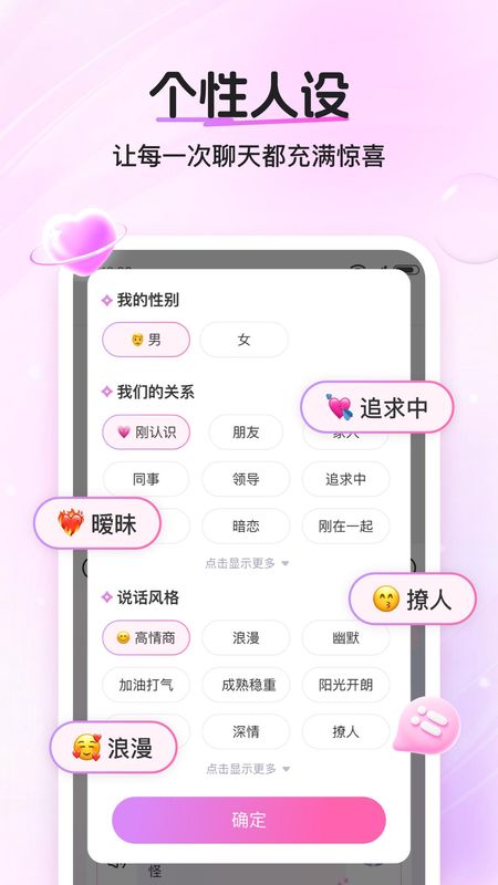 2、情话推荐,汇集各类土味情话与甜蜜语录,帮助用户在聊天中适时表达情感,拉近彼此距离。