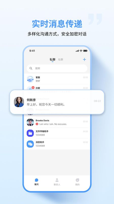 亿企聊是一款由国内专业团队研发的企业级即时通讯软件,致力于为用户提供安全高效的沟通解决方案。软件支持文字、图片、语音及视频等多种消息格式,并采用端到端加密技术保障通信安全。无论是内部团队协作还是外部客户沟通,亿企聊都能帮助企业实现便捷、可靠的即时信息交互。软件通过安全加密与多功能融合的设计,为企业及团队打造了一个统一、可信的沟通平台。用户可在保障数据隐私的前提下,高效完成日常交流、团队协作与客户维护,助力企业实现数字化沟通升级。