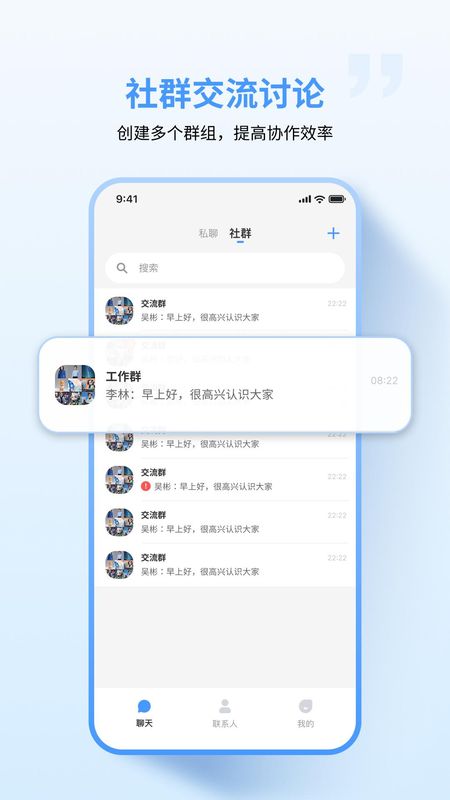 3、群组沟通:可创建内部群组或客户交流群,设置群管理员与发言权限,实现有序的团队协作与客户服务。