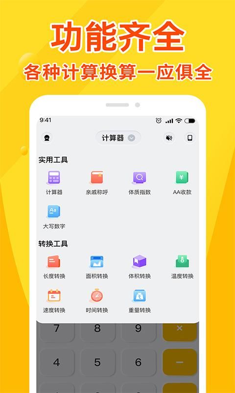 全能计算器王是一款集成了日常计算、科学运算与各类生活金融计算的综合型工具软件。它将简约计算器、科学计算器、房贷计算、车贷计算、个税计算、分期计算、面积换算、长度换算、温度换算、速度换算、重量换算以及大写金额转换等数十种实用功能融为一体,旨在为用户提供一个全方位、一站式的数字计算解决方案。程序实现了体积小巧、内存占用低、运行稳定流畅的设计目标,真正做到了多功能合一。在日常工作、学习或生活场景中,无论是学生进行复杂的科学函数运算,上班族规划房贷车贷,还是主妇进行烹饪时的单位换算,这款应用都能轻松应对,高效解决您在计算与换算中遇到的各种难题,成为您随身必备的超级计算工具。
