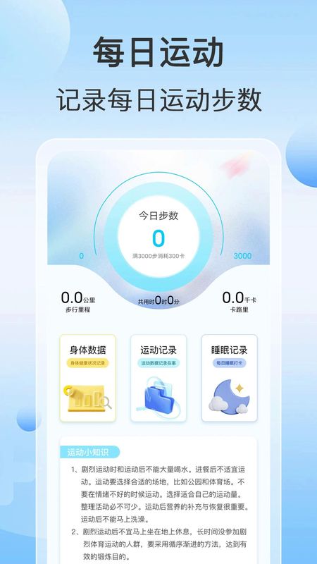 1、记录精准全面:采用智能算法精准统计步数与运动数据,同步支持身体指标、睡眠等多维度记录,全面覆盖日常健康管理需求;