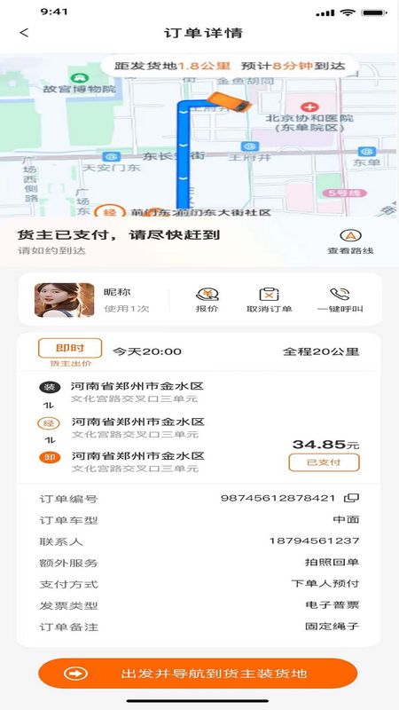 4、司机联系,下单后即时匹配附近司机,用户可直接与司机沟通装卸细节与行程安排。