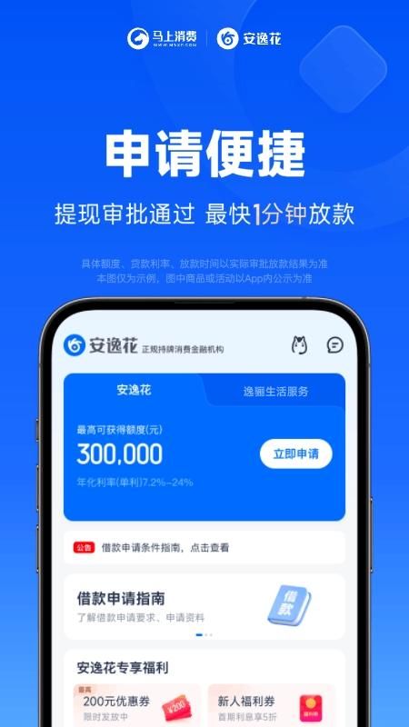 安逸花官网版是一款能够让用户在线对各种便捷资金贷款服务等都进行办理的app,将会在线对这些贷款业务等都进行智能化整理,让用户能针对自己的基础贷款需求情况等,在线对适合的贷款产品等都进行办理,从而对自己的实时资金缺口问题等,也都能在线帮助用户进行及时的解决。同时这里对于每一次的贷款信用等,都能进行在线通过多重信息认证,让用户的每一次贷款审核时间都能得到缩短。